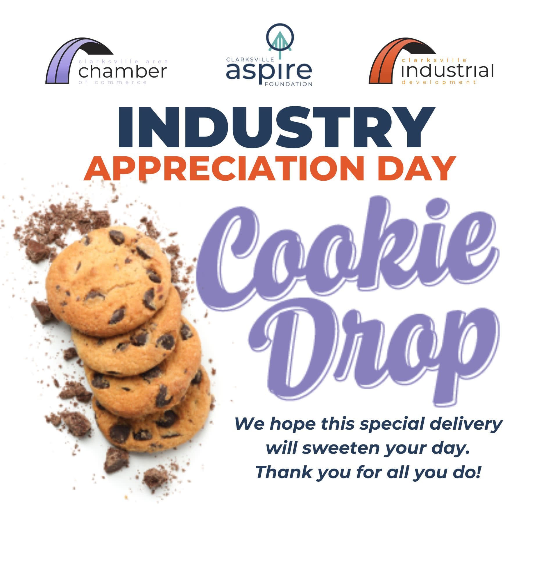 Industry Appreciation Cookie Drop is our opportunity to recognize, show appreciation for existing industries, as well as an opportunity to highlight our community to economic development partners.